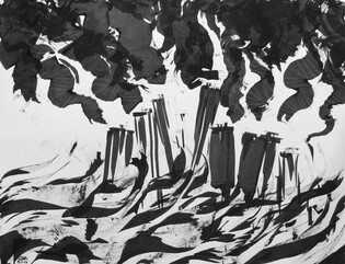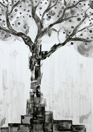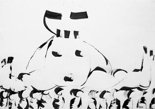 Dessins et peintures en noir et blanc, généralement à l'encre noire (aplats, lavis, traits...) et à la peinture acrylique, ou avec autres (…)