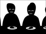 Elle ne pouvait plus mesurer le temps, mais assez vite semble t-il, elle aperçut de petites lueurs qui trouaient le noir au loin. Elles se rapprochaient lentement, elle put alors reconnaître des yeux, puis les figures de divers animaux. Il y en avait de plus en plus autour d’elle, une multitude innombrable, grouillante, inquiétante, avec en arrière fond comme un immense ciel étoilé peuplé d’autres petites lueurs qui convergeaient vers elle.