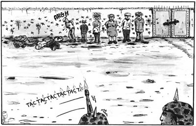 Les plus faibles moururent de faim. La décharge étant déjà pleine, les nettoyeurs jetèrent les morts dans la fosse qui sert d’ordinaire à détruire les excédents agricoles. Les cadavres ruisselant de sang s’entassèrent sur les fruits pourris.