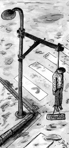 Il commença par sacrifier les personnes arrêtées par le maire précédent (c’est quand même mieux que les cafards) pour bien montrer sa détermination. Il installa ensuite des potences à tous les coins de rue. Pour satisfaire ses "gens" il autorisa la pendaison (après procès populaire) de tous les présumés terroristes ou autres personnages dangereux. Les citadins étouffaient de joie et ne se privèrent pas d’exercer leur droit de pendre. Avant d’aller plus loin et de réaliser la plupart de ses promesses électorales, il organisa un grand référendum du "oui à une ville pure" afin d’asseoir son autorité et ses projets. Il avait expliqué que si Dieu était en colère et leur envoyait ces épreuves inhabituelles, c’était à cause de catégories sociales ou raciales, sales et impures, qui l’indisposaient. Il se proposait donc maintenant de les éliminer purement et simplement. Tout le monde se précipita pour voter oui à ce référendum, chacun croyant appartenir à la catégorie dite pure.