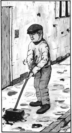 Malgré le marché noir et les passeurs qui traversaient la barrière des forces spéciales (en offrant quelques billets), les vivres commençaient à manquer ; c’était l’heure des restrictions. On pouvait voir des apprentis bouchers courir avec une hache après les porcs échappés de l’usine à viande afin de se constituer une réserve. Des gamins, apprentis adultes, tiraient à la fronde ou au 22 long-rifle sur les pigeons et les rats qu’ils revendaient à bon prix aux bouchers