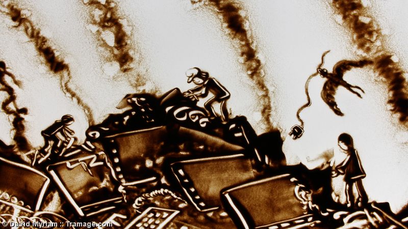 – * This multimedia show combines blue sand & brown sand, live sand art on stage & recorded sequences, with lyrics and music by Martin Ferron, and some drawings by Julien Cachemaille - Contacts for booking