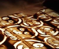 Le graphisme joue avec la lumière et crée des histoires imaginaires en direct, avec une matière insaisissable.